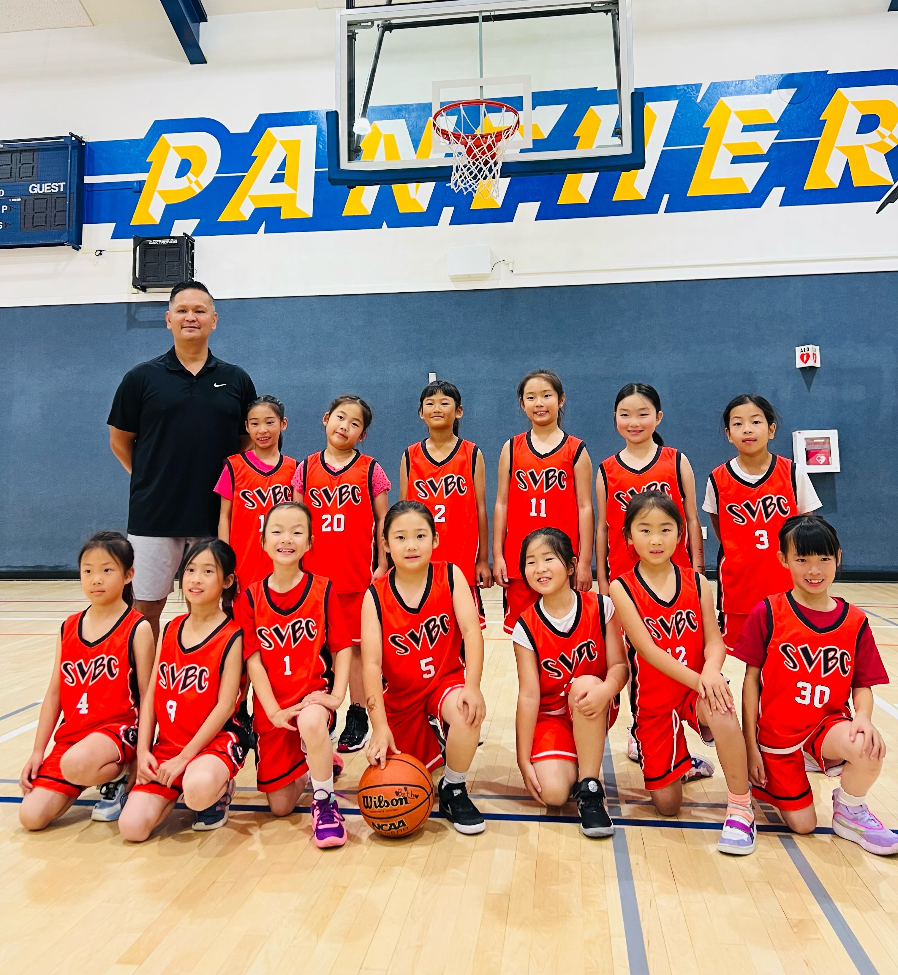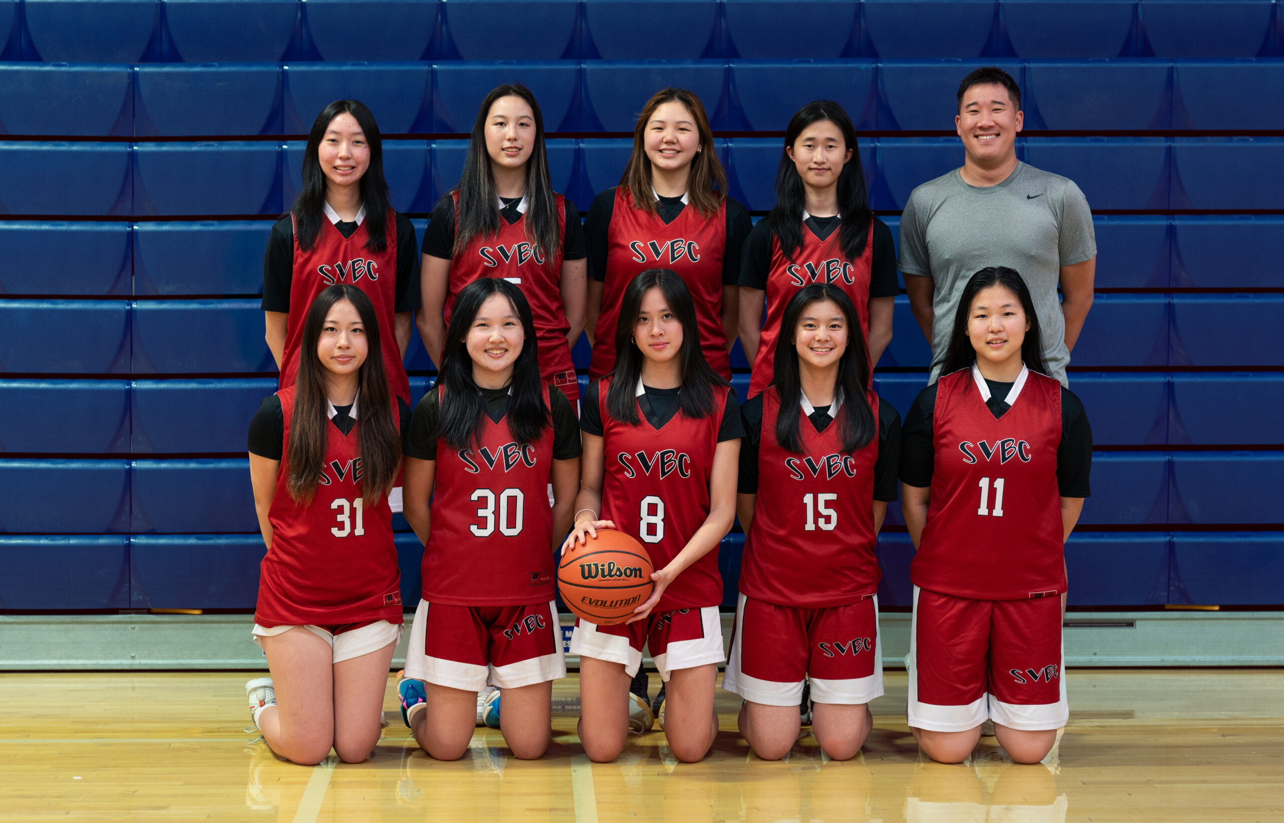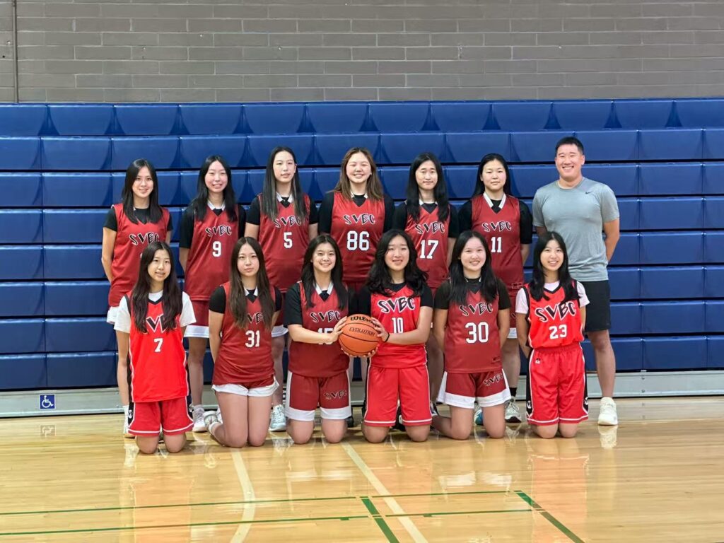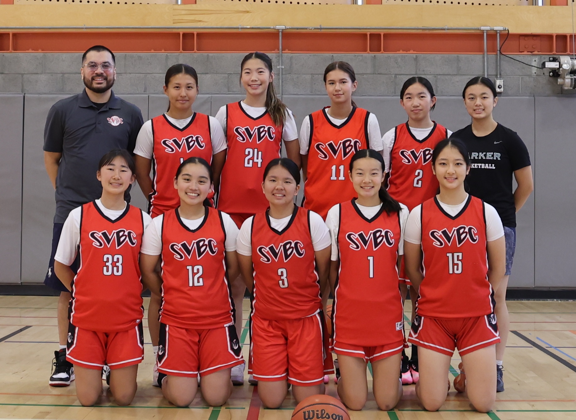 From left to right: Back row: Kally Wen #9, Catherine Yang #5, Natalie Chang #86, Alicia Yan #17, Coach Eric Lee Front row: Vivian Lee #31, Ava Cai #30, Rita Zhou #8, Claire Yu #15, Anna Yue #11